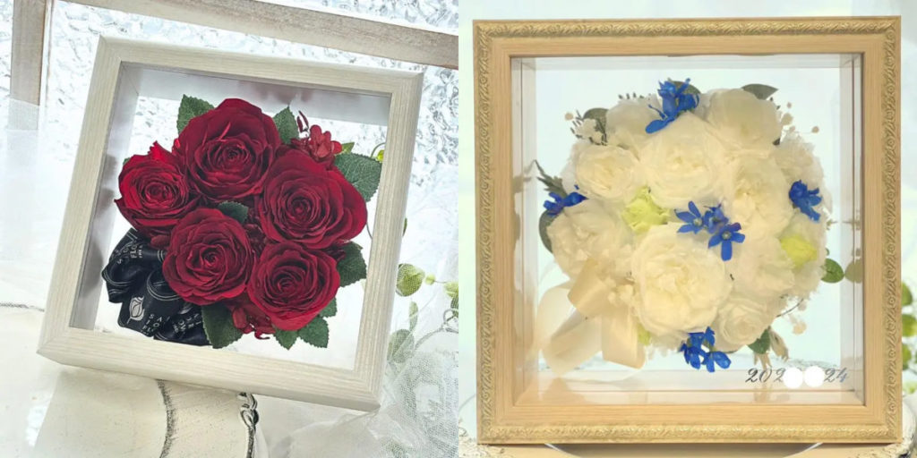 額装・ボックスアレンジなど、「形を変えて残す」提案が豊富なのも特徴です。