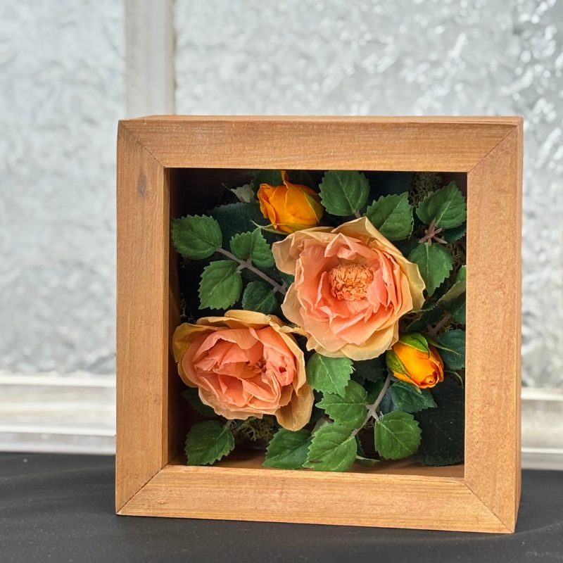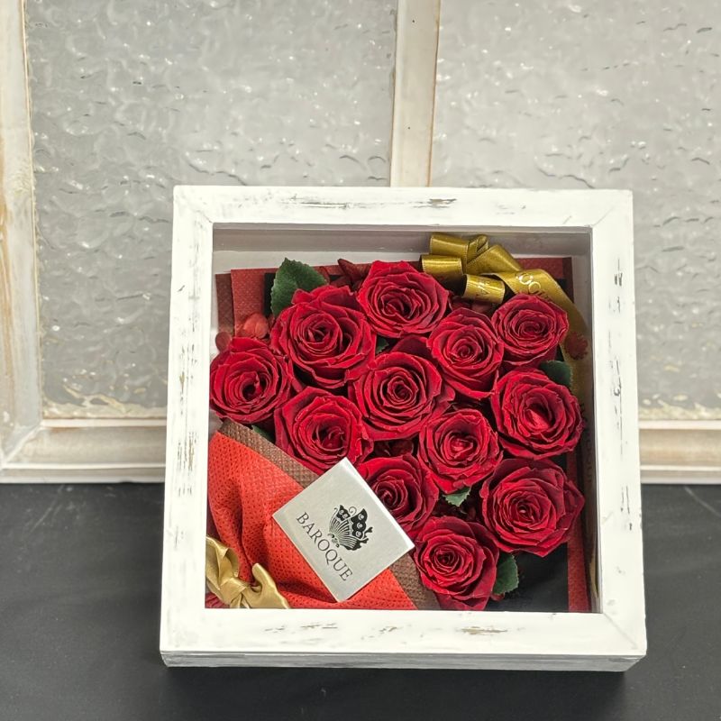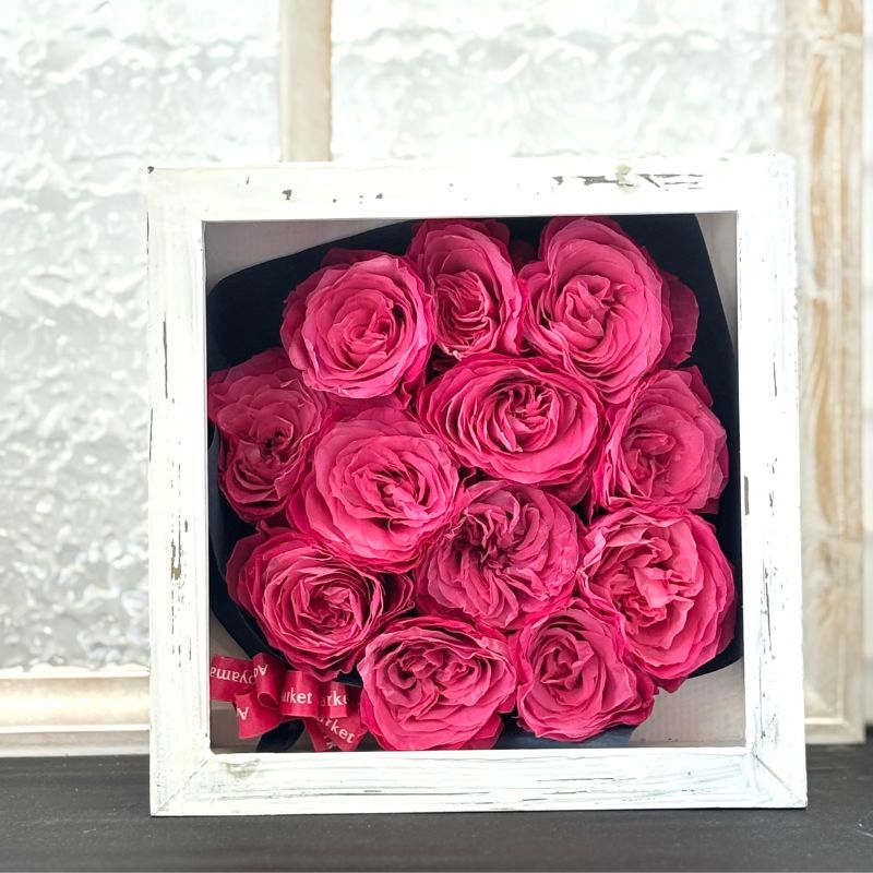 9~12輪のバラをプリザーブドフラワーに加工しナチュラルウッドフレームにアレンジ致します。