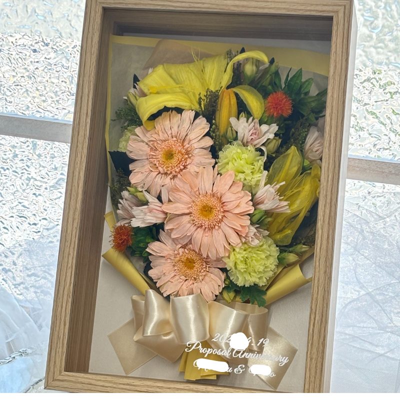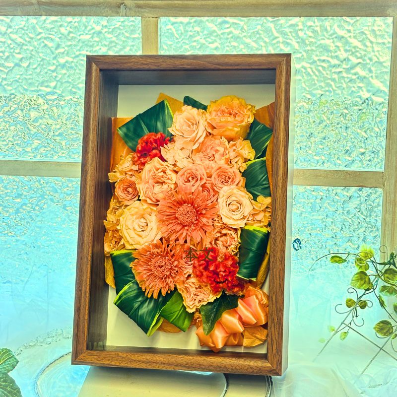 9~12輪のバラをプリザーブドフラワーに加工し長方形フレームにアレンジ致します。