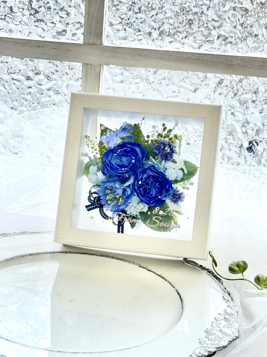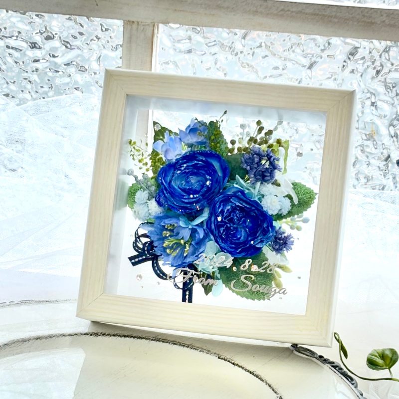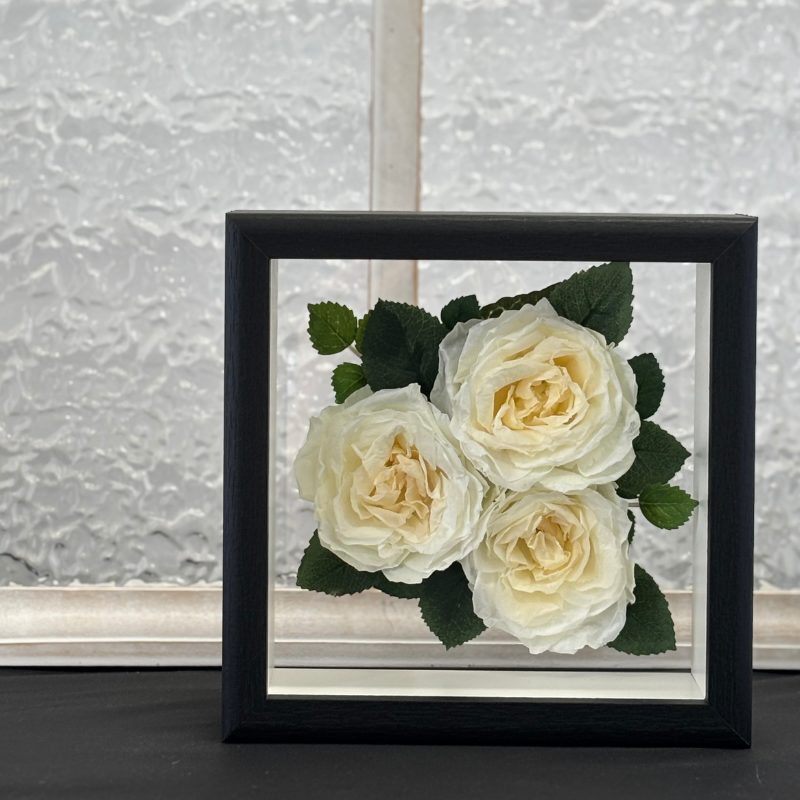 バラ3~6輪をプリザーブドフラワーに加工しフレームアレンジ致します。