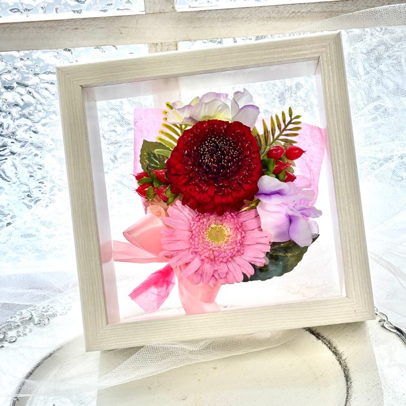 【pr-35】バラ・ガーベラ20輪加工 フレームアレンジ