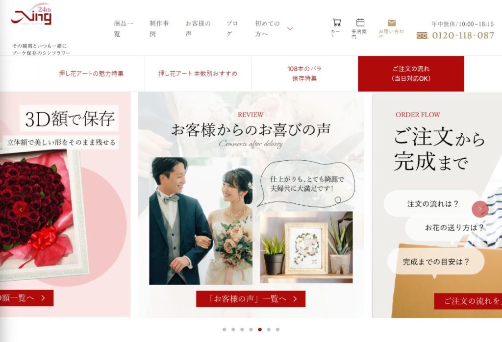 押し花やドライフラワー加工で花の魅力を引き出す加工技術が特徴です。
